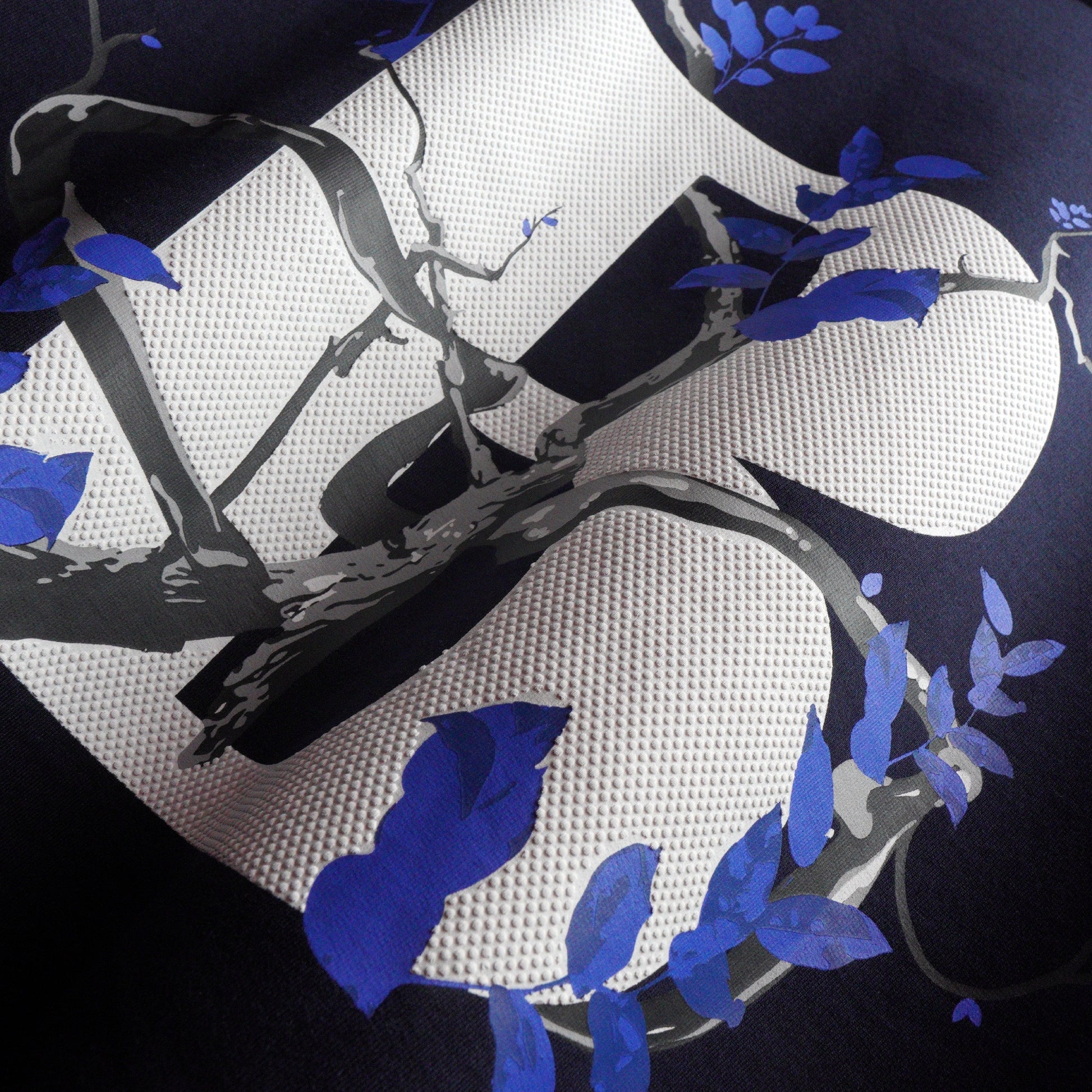 It is 100% terry cotton, 230 gsm and screen printed. The fit is a Bluorng’s signature oversized fit