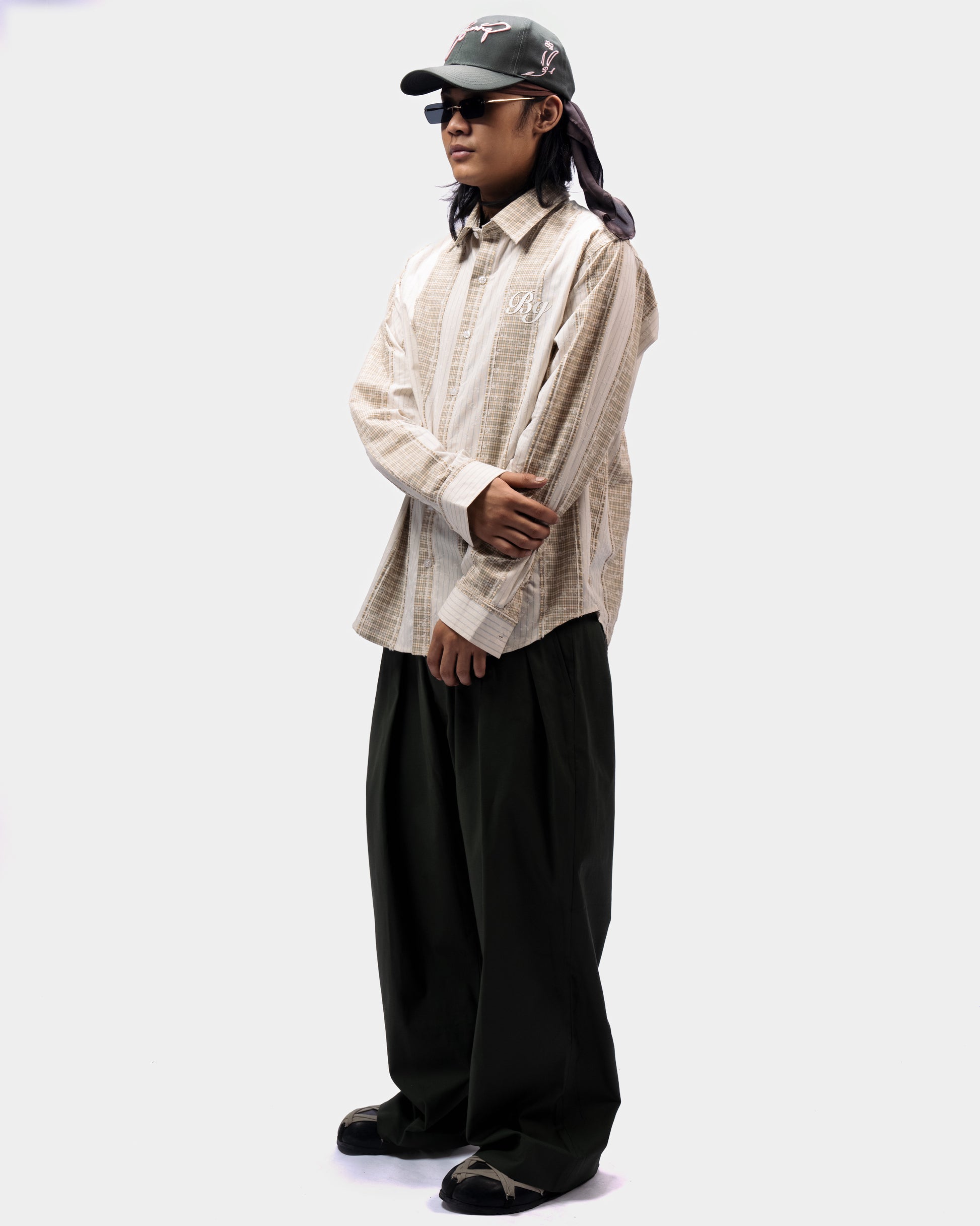 Beige Plaid And Petals Shirt blends soft structure with elevated detailing for a refined everyday look. Crafted from 100% cotton, this beige premium shirt features a unique bonded fabric construction that adds durability while maintaining all-day comfort. The subtle plaid base is layered with delicate petal-inspired accents, finished with a clean silicone HD print at the back for a modern signature touch.