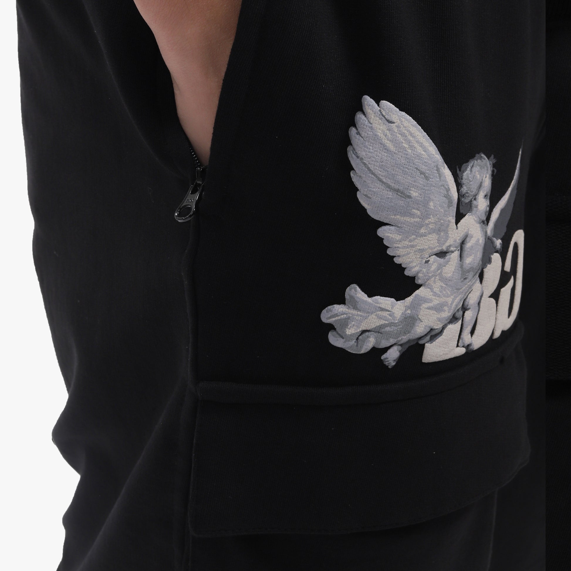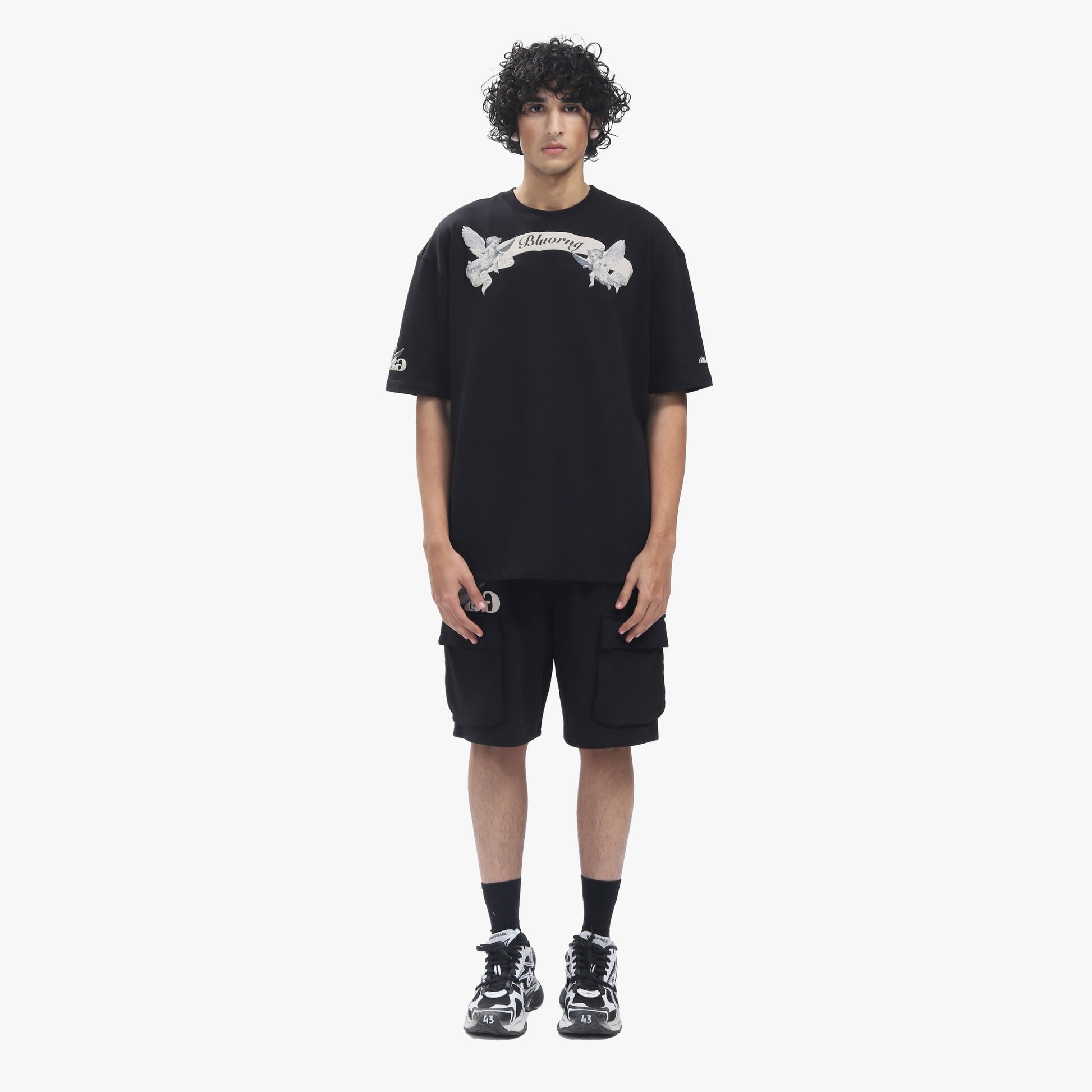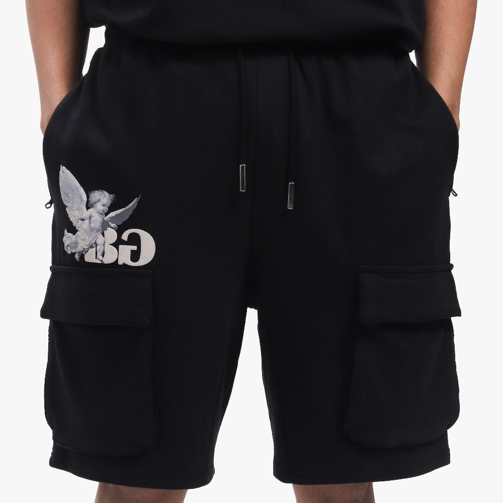 Bermuda shorts in black featuring an adjustable elasticated waistband with drawstrings. Front pleats. Front pockets and rear welt pockets. Model is wearing size L.