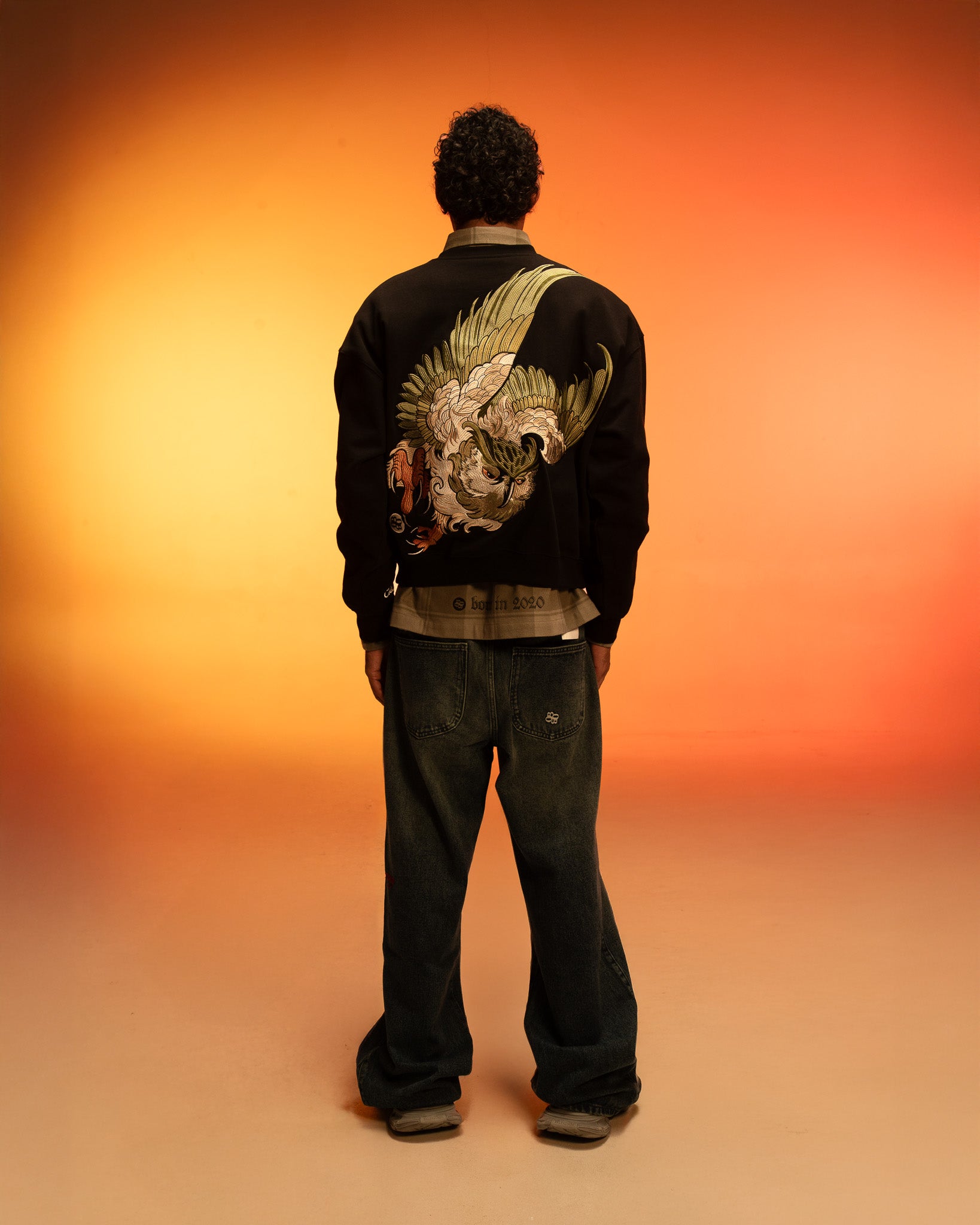 THE BLACK NOCTURNAL SWEATSHIRT BY BLUORNG OFFERS A PREMIUM OVERSIZED UNISEX FIT WITH EMBROIDERY ON THE FRONT AND BACK. MADE FROM 100% BRUSHED COTTON FLEECE AND A HEAVYWEIGHT 450GSM FABRIC, IT'S SOFT AND COZY.