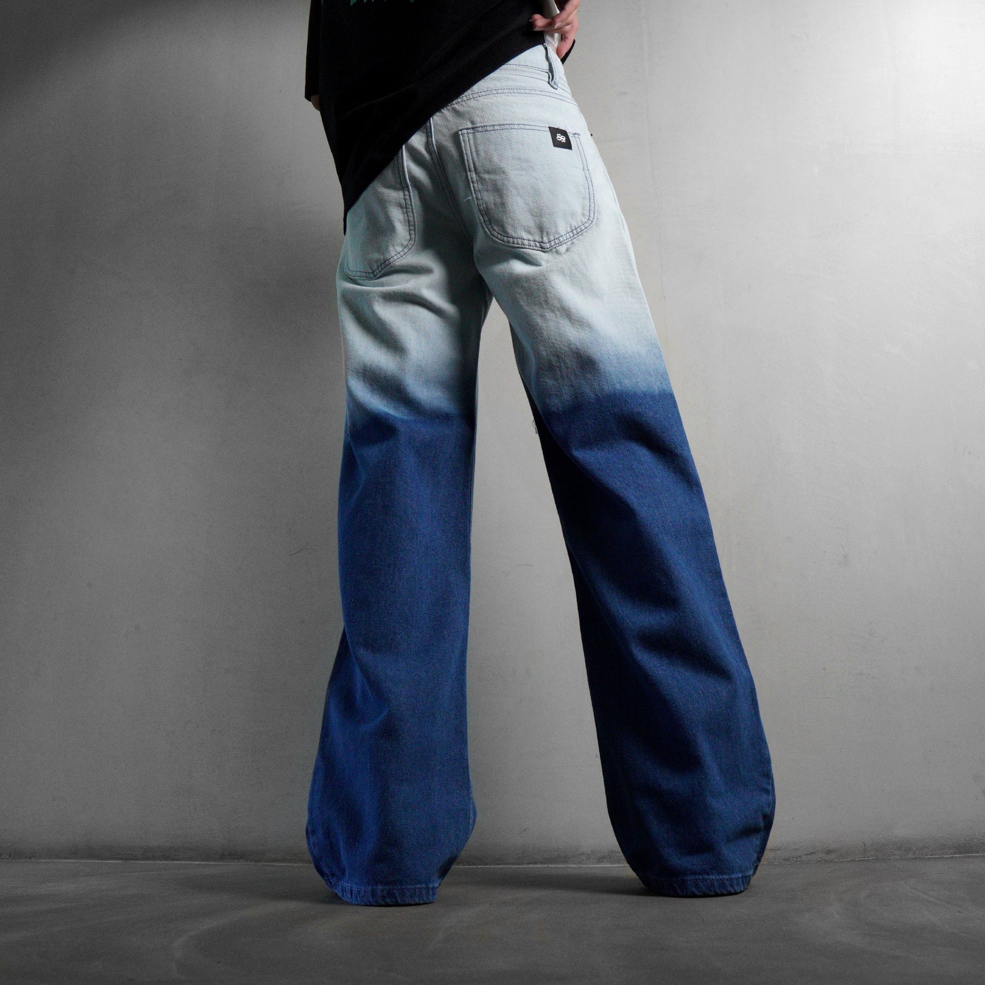 Bluorng Floral Denim is in ombre fade. The design is inspired from floral arrangements It is 100% cotton denim and screen printed. The fit is a Bluorng’s baggy flared fit.