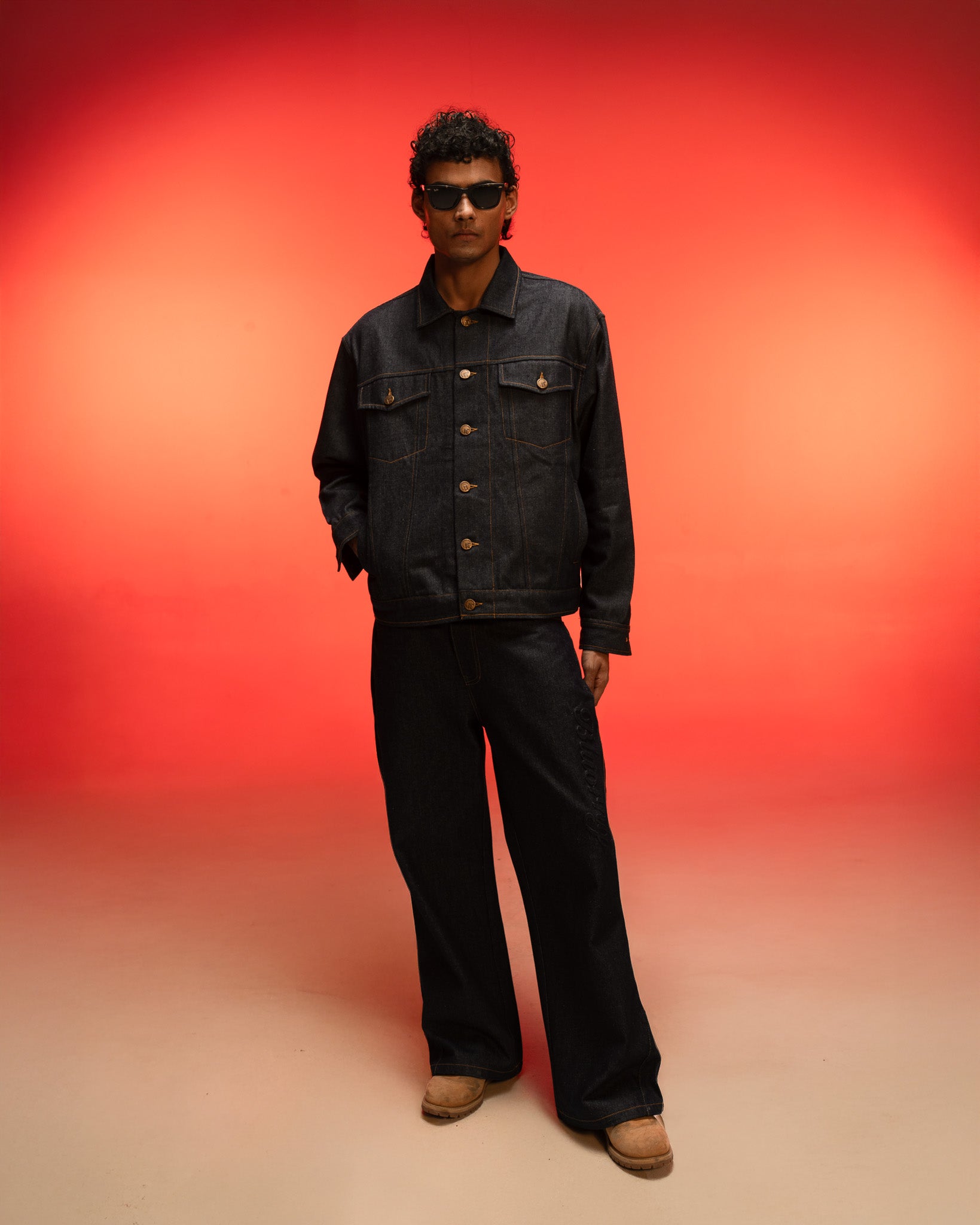 THE RAW DENIM JACKET BY BLUORNG IS A PREMIUM OVERSIZED UNISEX JACKET MADE FROM 100% COTTON DENIM. FEATURING THE ICONIC BLUORNG LOGO.