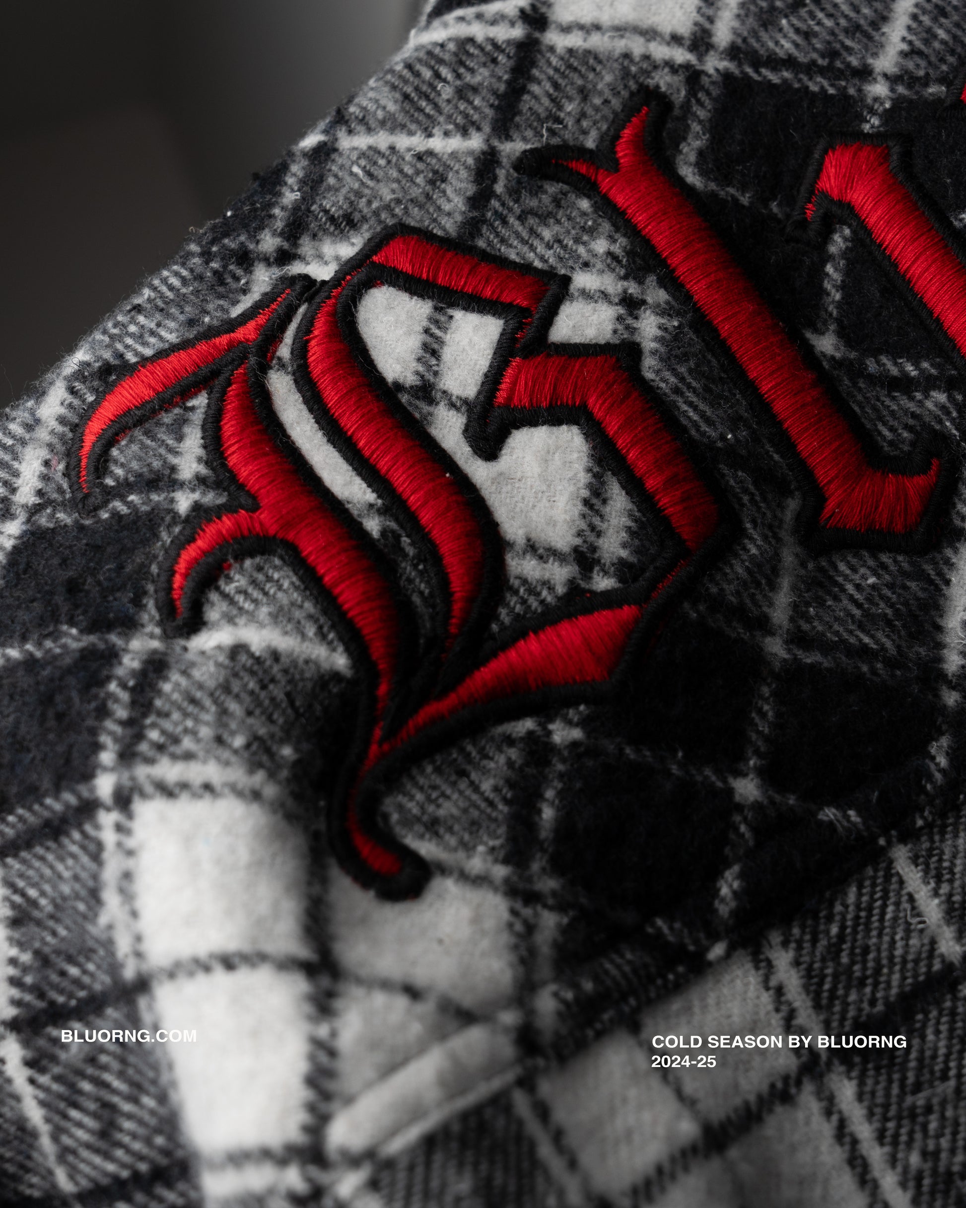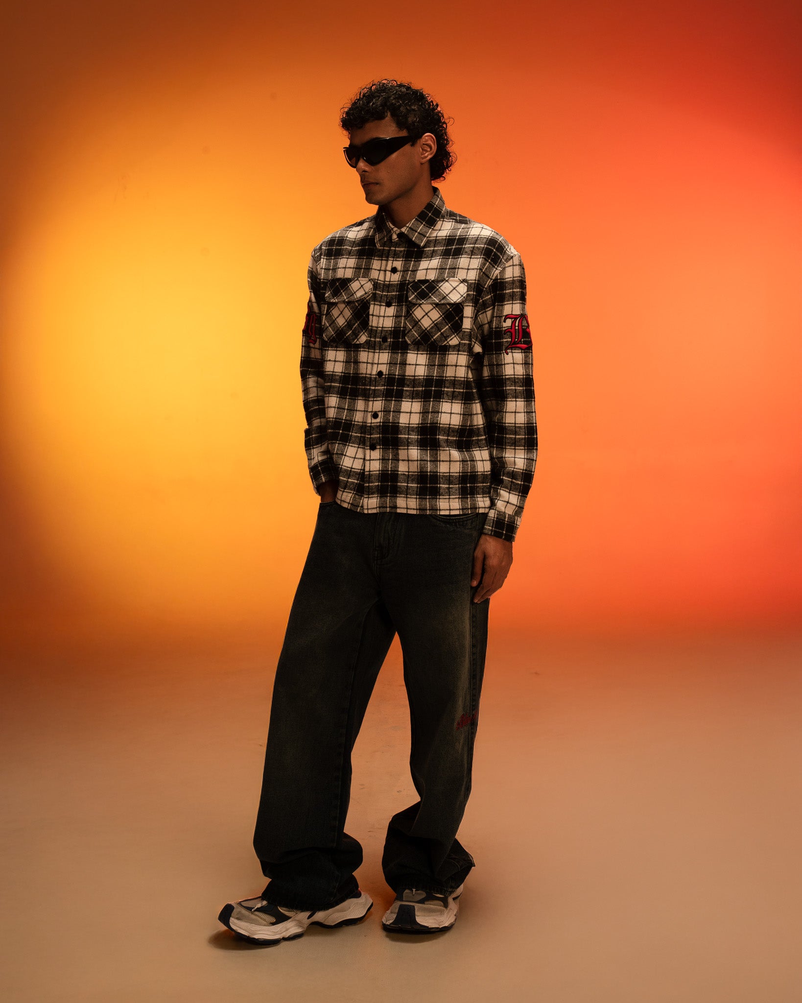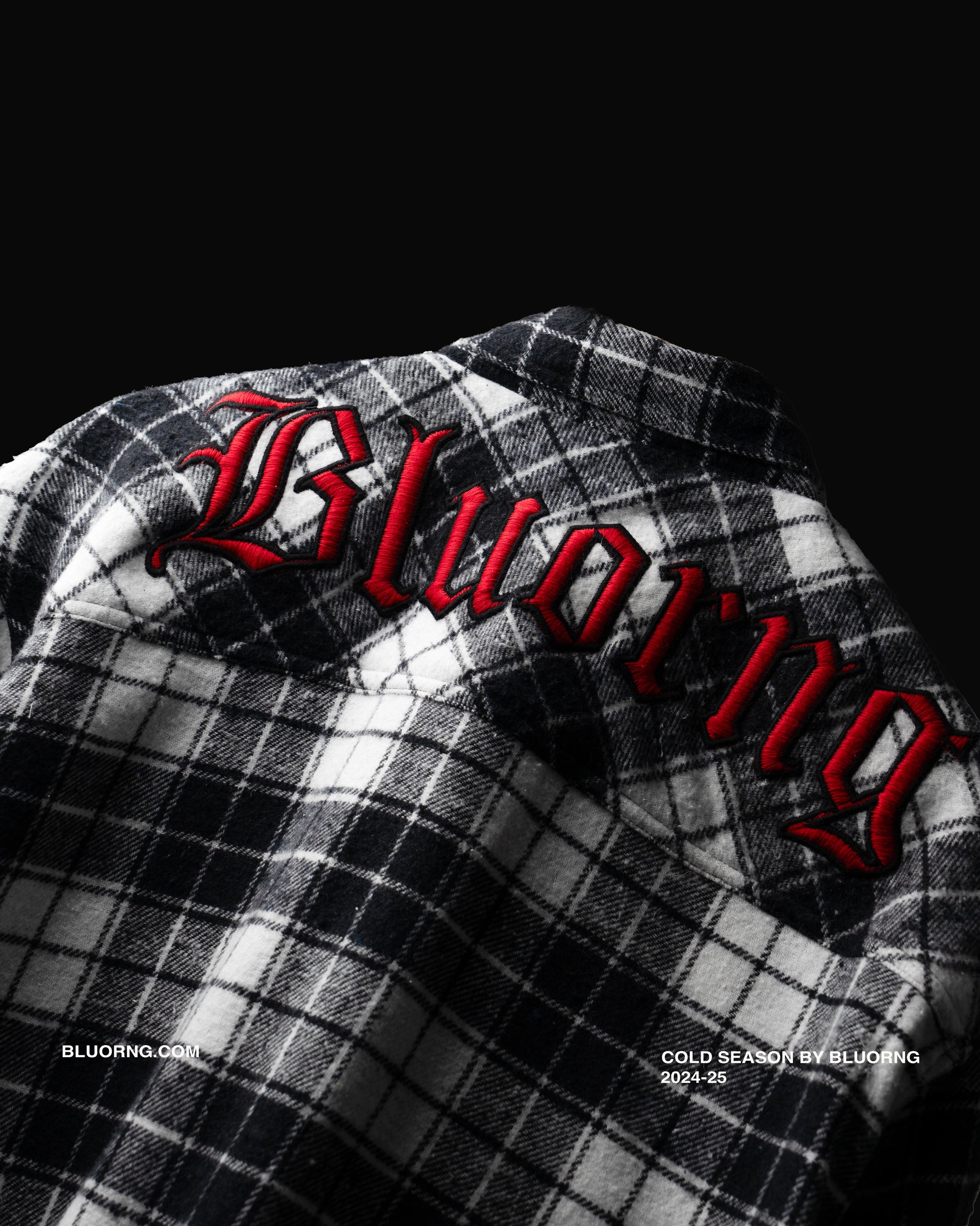 MAKE A STATEMENT WITH BLUORNG'S REDLINE PLAID SHIRT. FEATURING AN OVERSIZED UNISEX FIT AND BOLD EMBROIDERY, THIS PREMIUM 100% COTTON SHIRT OFFERS THE PERFECT BLEND OF COMFORT AND STYLE. IDEAL FOR ANY OCCASION, IT ADDS A STREETWEAR EDGE TO YOUR WARDROBE.