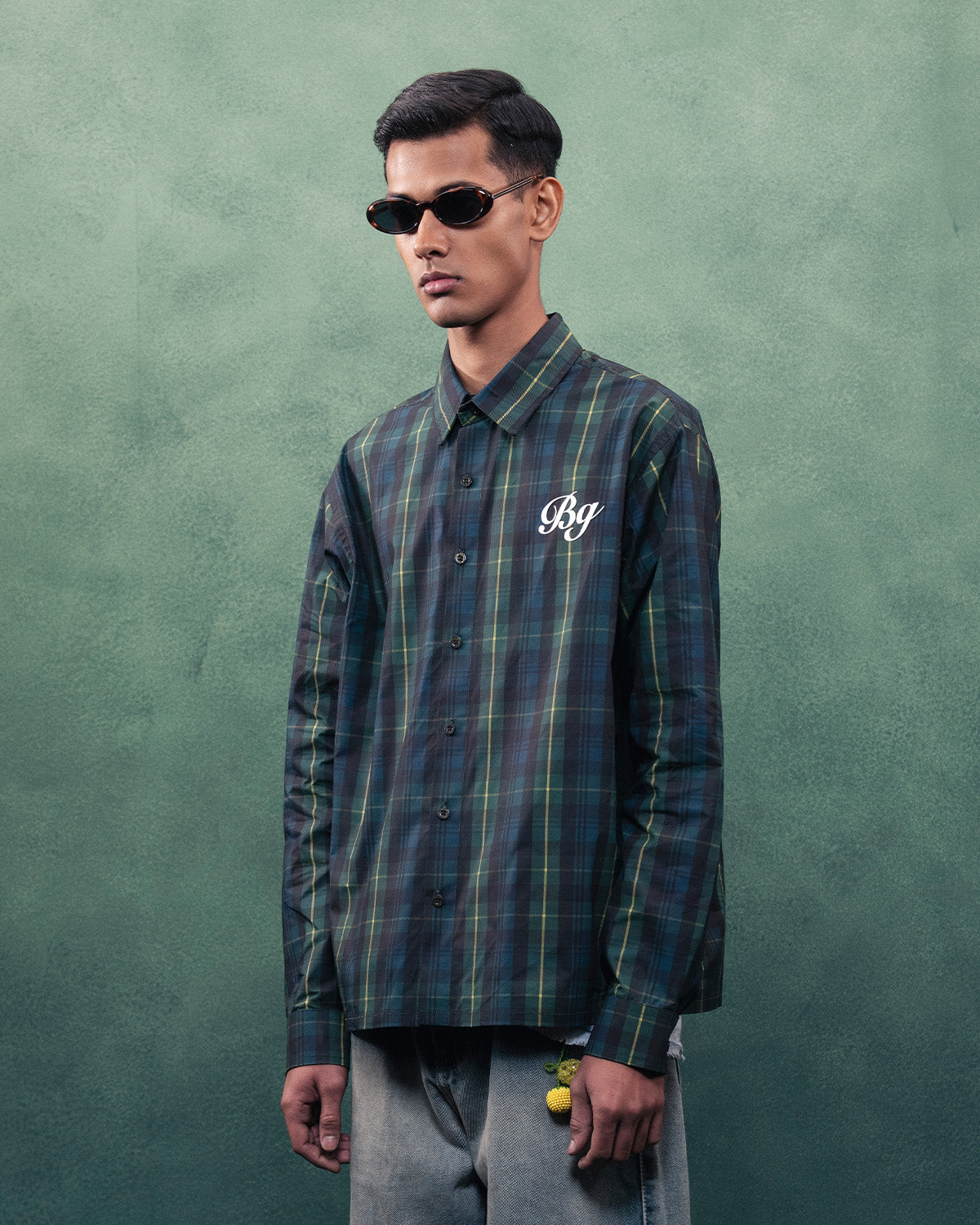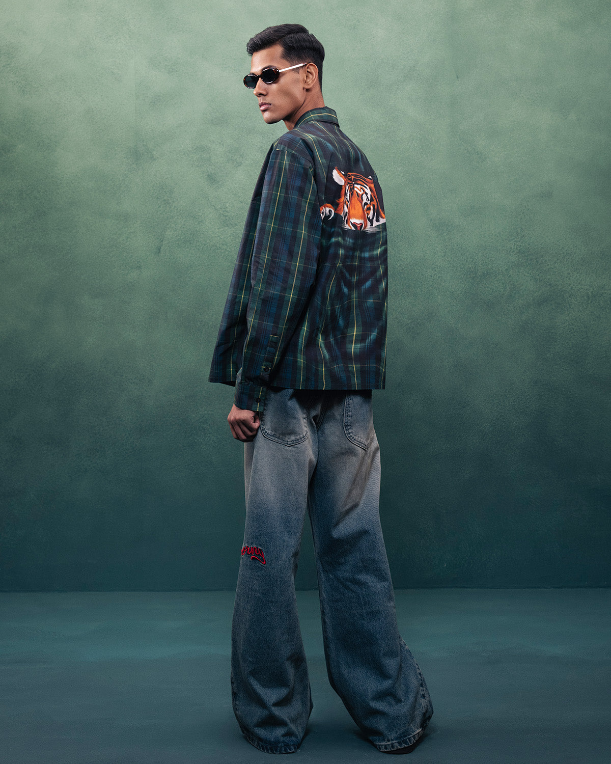 The Sleeping Tiger Shirt by BLUORNG adds a playful and bold feel to your style. The check pattern looks classic, while the tiger design makes it stand out.